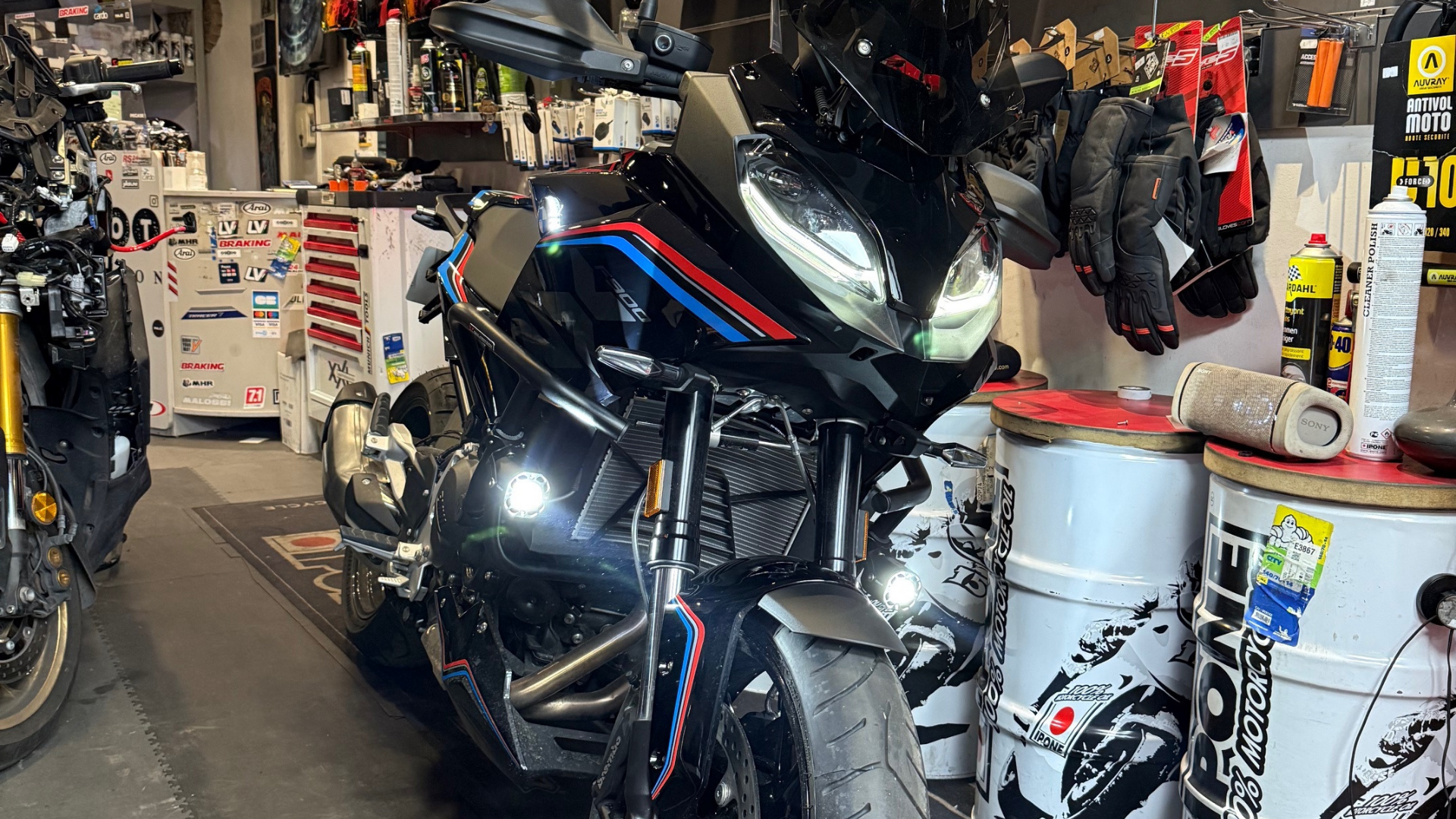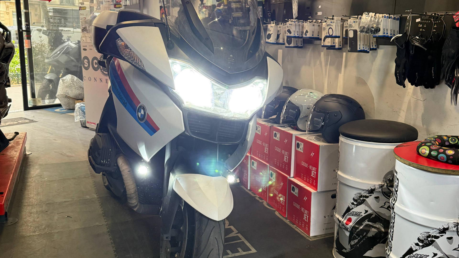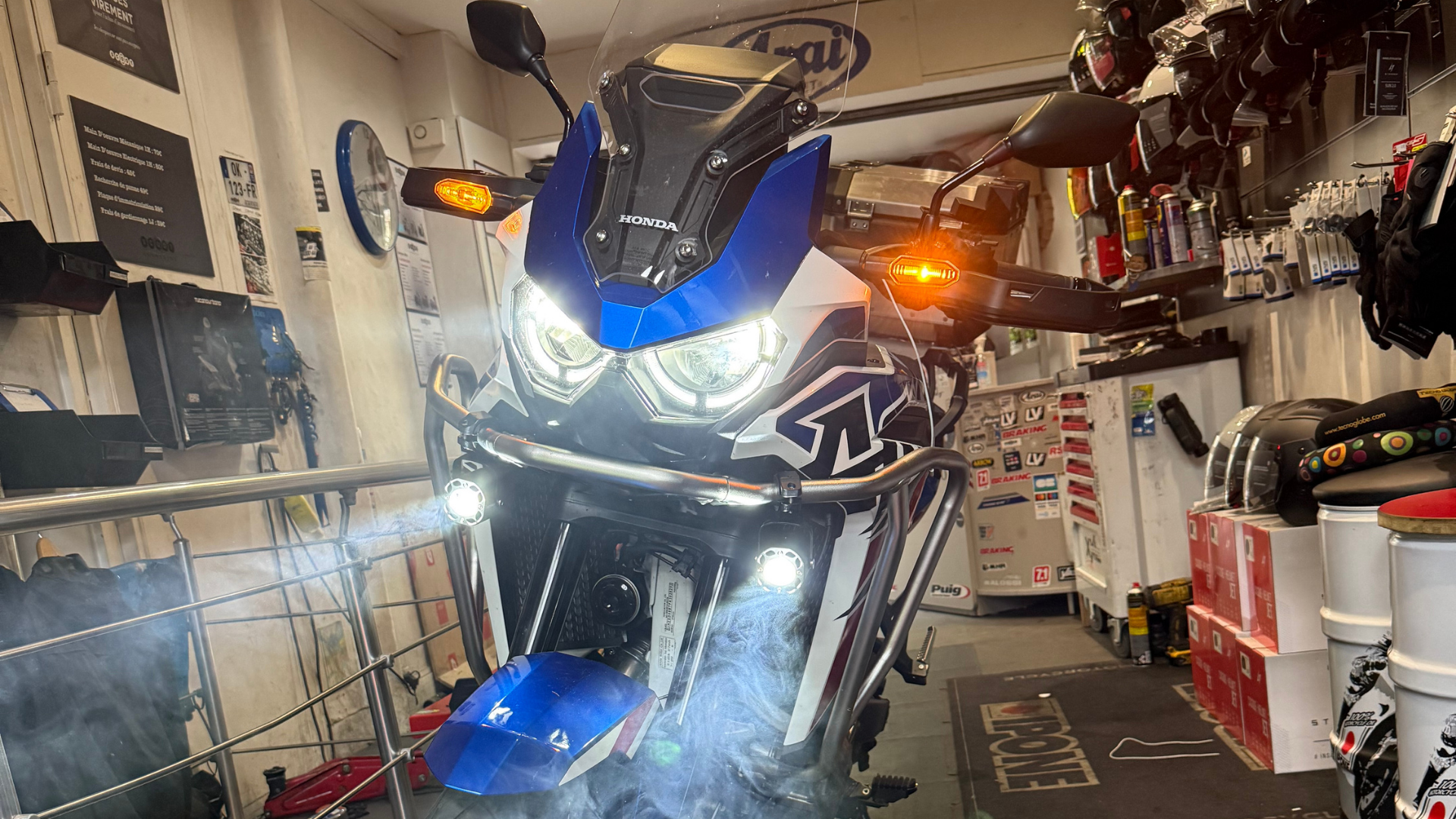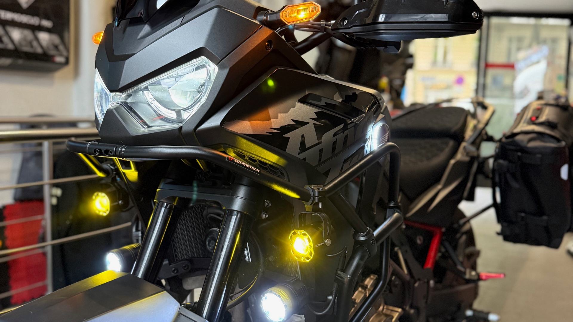 FEUX ADDITIONNEL AVEC FLASHING à partir de 280€ AVEC POSE POUR MOTO & SCOOTER (plusieurs modes de flashing + fixe blanc ou jaune) Crash bar Puig ou Sw motech sur commande contactez nous pour un devis par téléphone ou mail